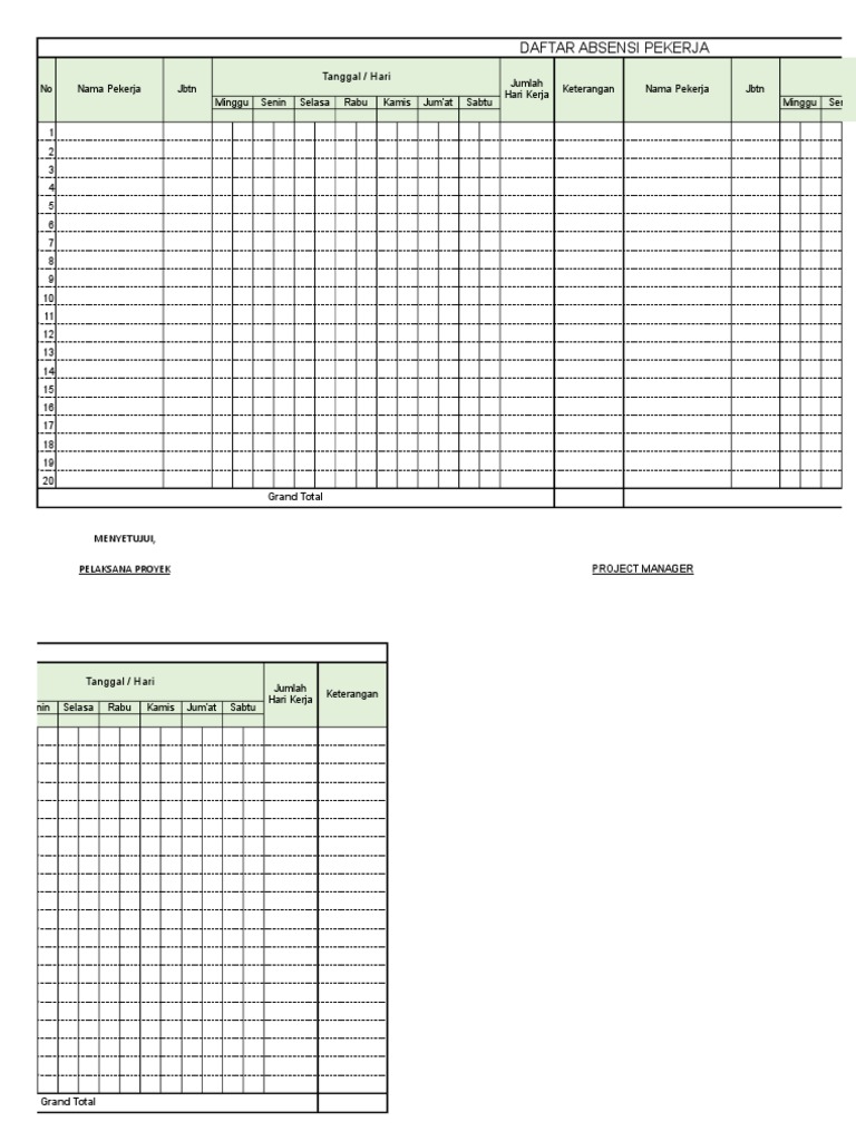 Contoh form absensi tukang bangunan.